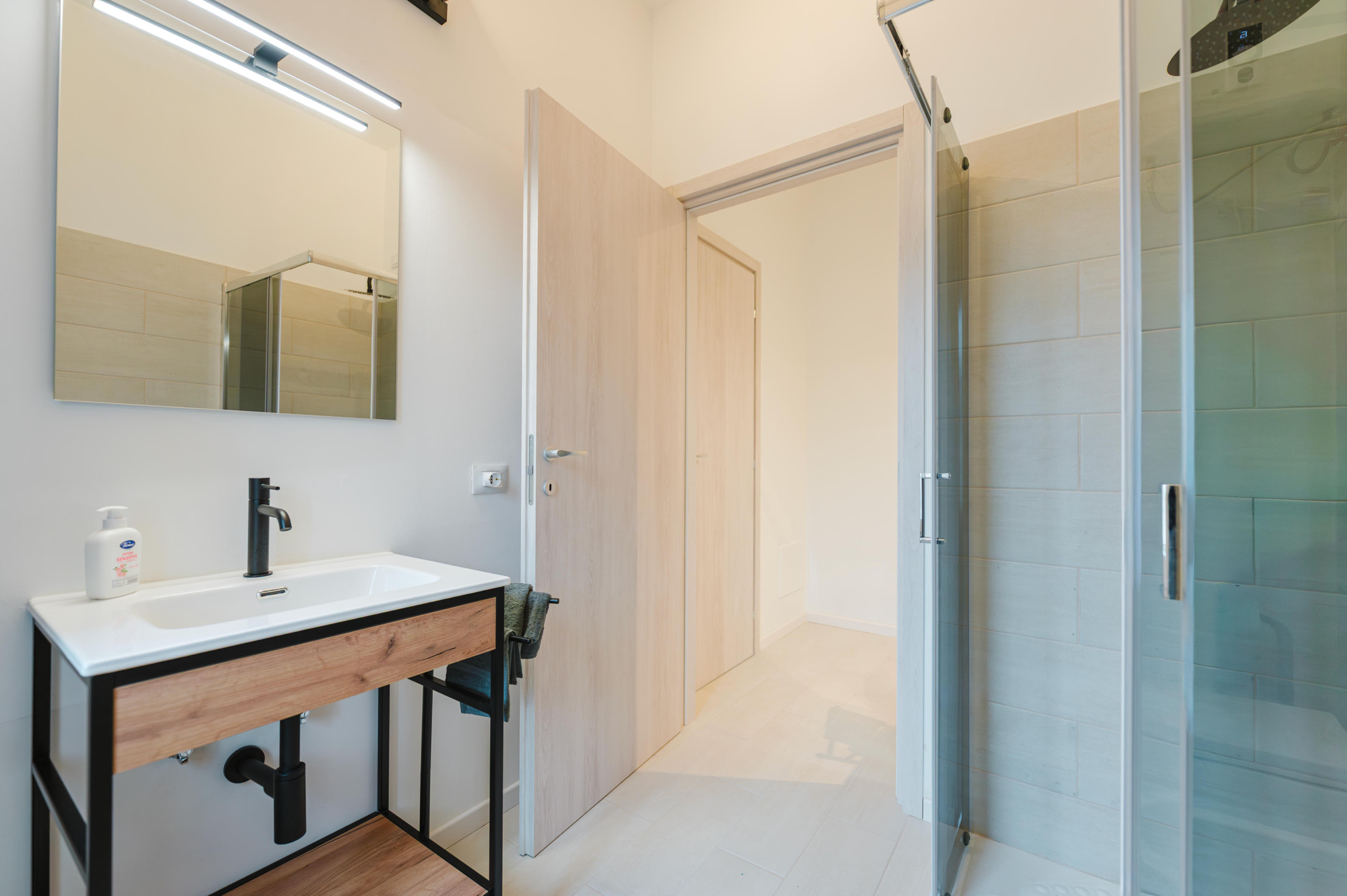 The bathroom is shared only with the adjacent room, making it suitable for friends, colleagues, or small groups traveling together.